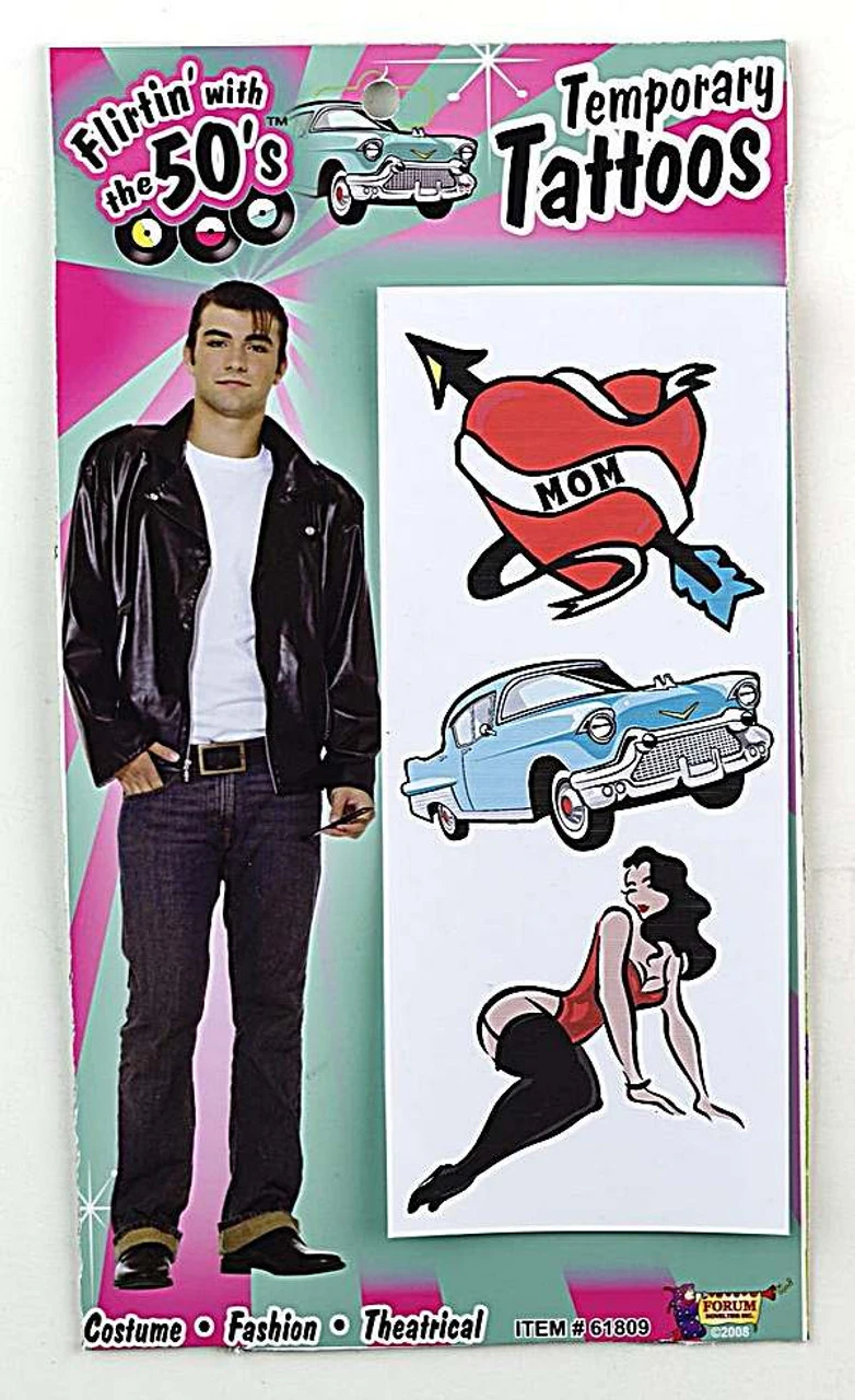 Add a extra something to your 50’s Costume with these temporary tattoos!