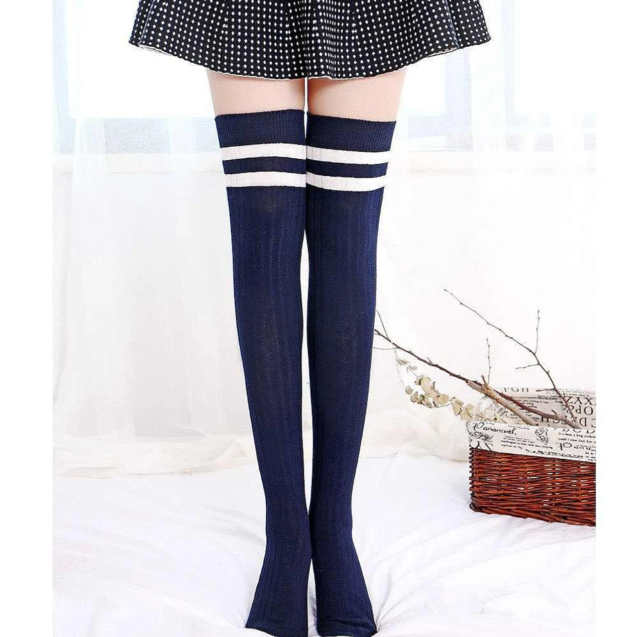 ComplĂ©tez votre costume d’Ă©coliĂšre avec ces Bas Bleus Mi Cuisses avec bordure blanche. Ces bas bleus sont opaques avec une bordure blanche montent aux dessus des genoux et sont bien ajustĂ©s.Â
