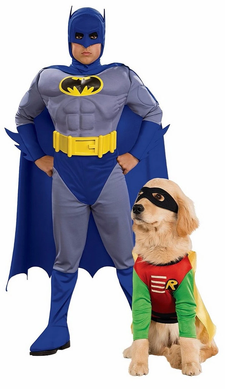 Is your child thinking of dressing up as Batman this year? Excellent choice! But he’ll need his loyal sidekick, Robin. Thanks to this set of costumes, which includes the Batman Blue Muscle Chest Deluxe Costume and the Robin Dog Costume, that’s now possible! They’ll make an adorable crimefighting duo this Halloween.