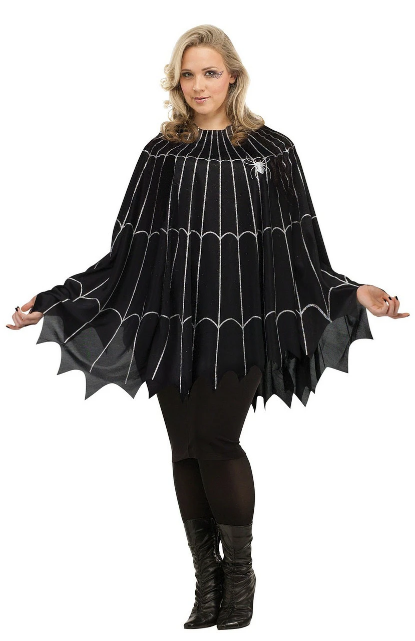 Ce poncho en toile d’araignïżœe noire argentïżœe grande taille sera un accessoire amusant pour votre costume ! Il comporte un poncho noir avec une toile d’araignïżœe scintillante.