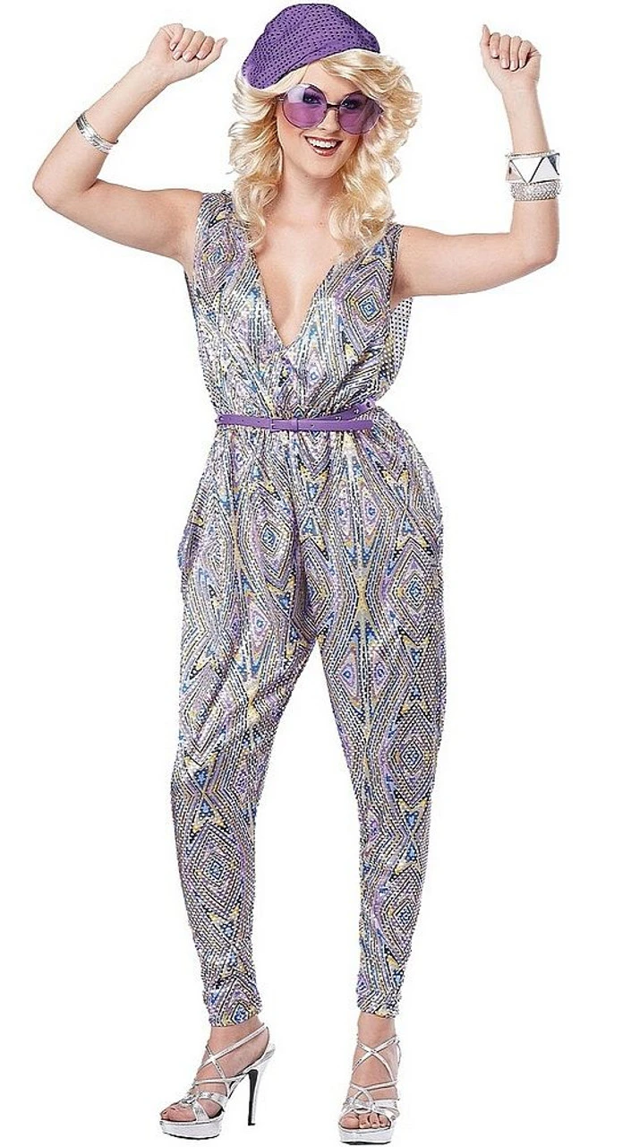 We hope you’re ready to boogie, because this is one costume that will make you want to dance all night long! Step onto the dancefloor with the Boogie Fever Women’s Jumpsuit and dance along to disco hits. The costume features a shiny, fluid jumpsuit with a groovy pattern, a purple belt, and a matching purple hat. Add some bangles and glasses (not included) to really make you feel like you’ve stepped back in time!