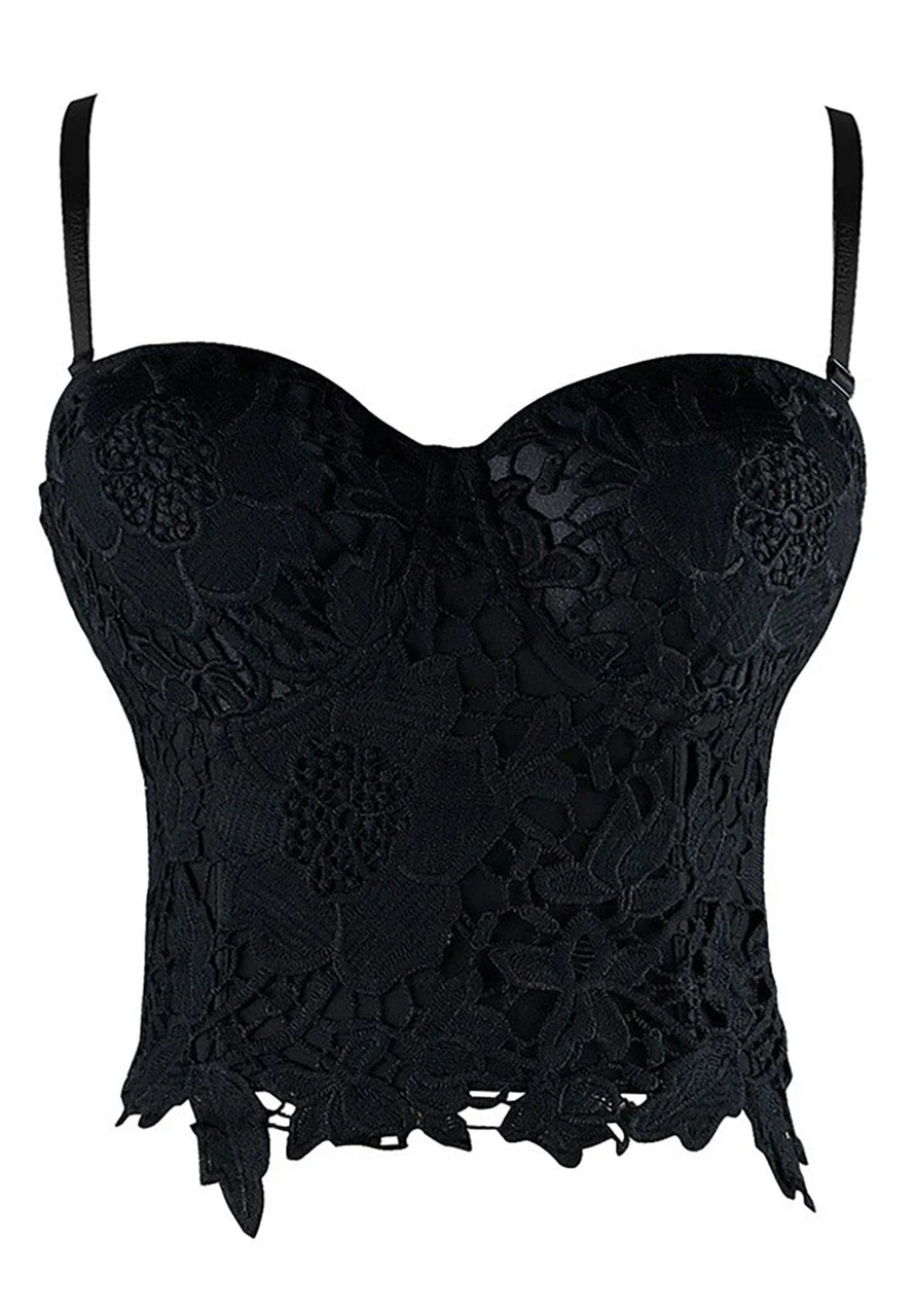 Adoptez la tendance corset avec cet incontournable top bustier en dentelle noir! Ce haut court polyvalent est conçu avec une belle dentelle luxueuse florale, d’armatures au niveau des bonnets avec un buste rembourrĂ© pour un soutien supplĂ©mentaire ; un dĂ©colletĂ© en cĹ“ur et des bretelles ajustables (et amovibles). Les 4 rangĂ©es de fermetures Ă crochets au dos permettent un ajustement parfait. Ce haut doublĂ© est dotĂ© de structure sur tiges verticales dans la doublure pour donner de la structure au haut tout en Ă©tant cachĂ© sous la dentelle. Ce haut au look modern convient Ă toutes les saisons et Ă de nombreux Ă©vĂ©nements : vous pouvez le porter pour les sorties dĂ©contractĂ©es, la plage, les rĂ©unions d’amis ou clubbing, les fĂŞtes et les mariages.