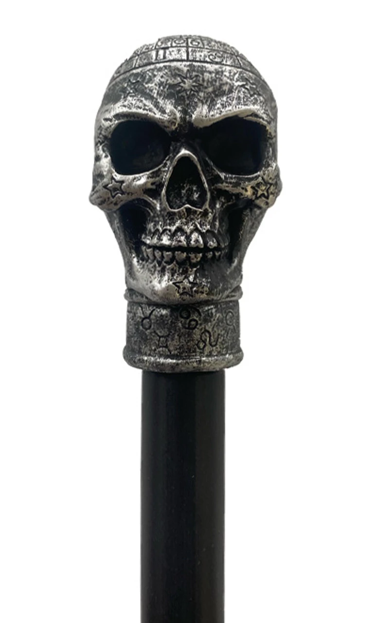 Montrez cette canne-sceptre en argent à l’occasion d’Halloween et ajoutez quelque chose de plus à votre costume ! Cette canne-sceptre en argent mesure jusqu’à 55″ de long. Elle est dotée d’une canne facile à assembler pour que vous puissiez la ranger si vous en avez assez de la tenir toute la nuit. Le crâne en argent a des détails astrologiques à l’avant et à l’arrière. Idéal pour tout costume de sorciers!
