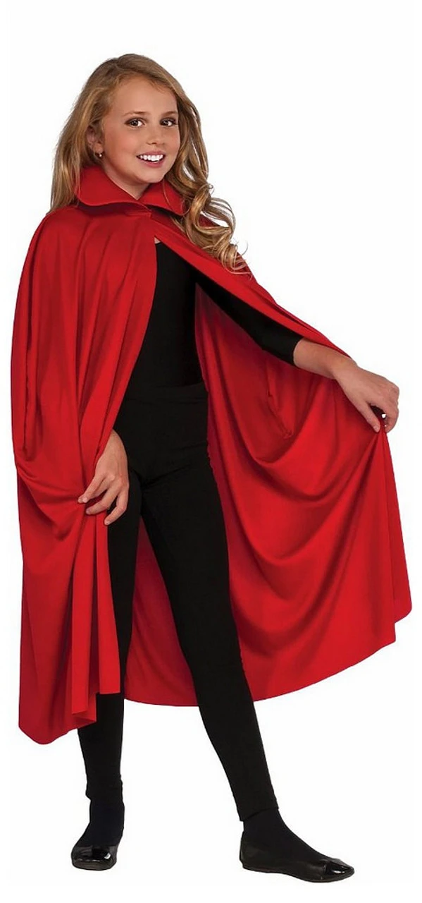 Votre enfant peut complĂ©ter son costume avec cette cape rouge de 36â, qui comprend un col montant! Cette cape versatile sera parfaite pour de nombreux costumes : un vampire, par exemple, ou un prince.