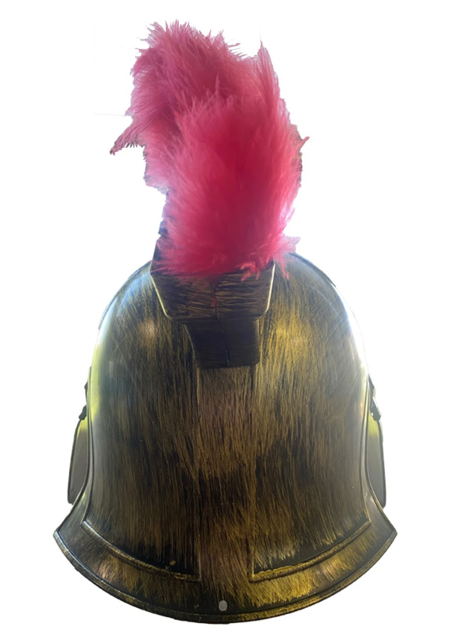 Avé, Centurion! Complétez votre costume de Romain avec ce Casque de Centurion Lion Doré, finement décoré! Le casque est décoré d’un lion sur la visière et d’une plume rouge vif.