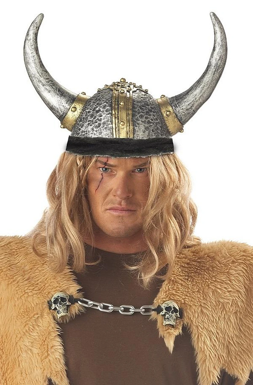 Authentic looking Viking Helmet in silver color with Gold accents. A must to complete the viking look.
