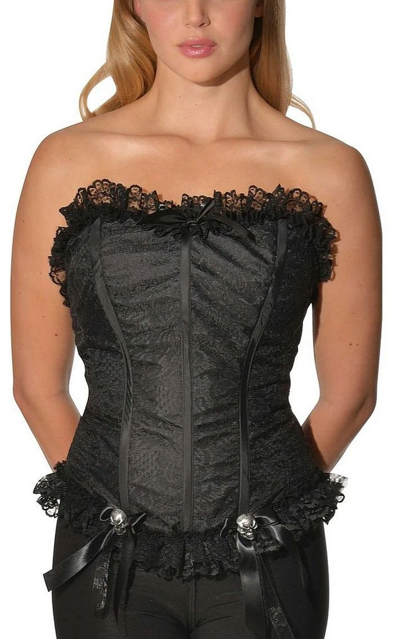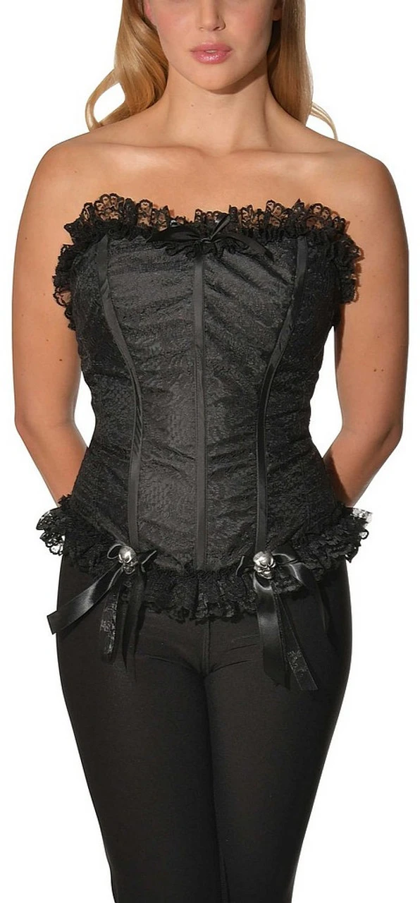 Ce magnifique Corset de la Crypte noir sera parfait pour votre costume dâHalloween! Le corset est bordĂ© de dentelle noire et comprend deux rubans noirs sur la bordure inferieure.