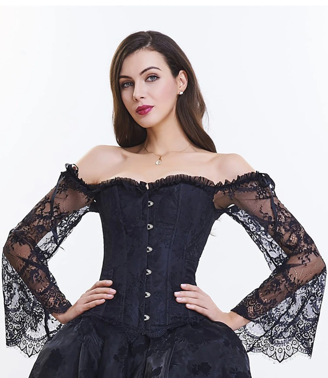 Le Corset Noir Structuré Manches Dentelle comprend :