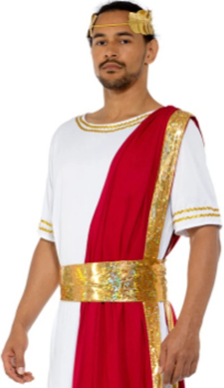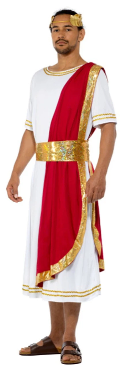 Et tu, Brute ? Transformez-vous en ce personnage historique dans ce Costume César Empereur Romain pour Homme, composé d’une longue tunique garnie d’or blanc avec une ceinture rouge jetée par-dessus. Ce costume comprend également une ceinture en or pour lier l’ensemble de la tenue, ainsi que la couronne emblématique de la feuille d’or de César.