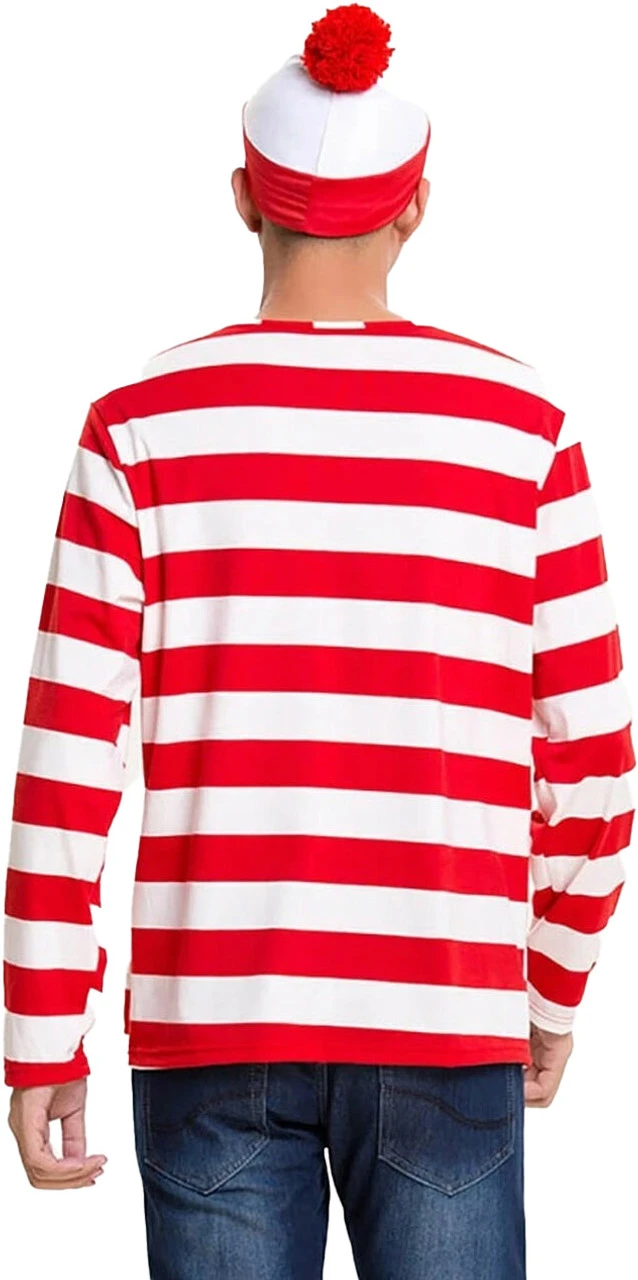 Ils ne pourront pas vous trouver… si vous portez autre chose que ce costume à l’Halloween! Le Costume Chandail Rayé Blanc et Rouge pour Hommes comprend des lunettes noires avec un chapeau blanc et rouge avec un pompon rouge sur le dessus et un chandail rayé rouge et blanc assorti!