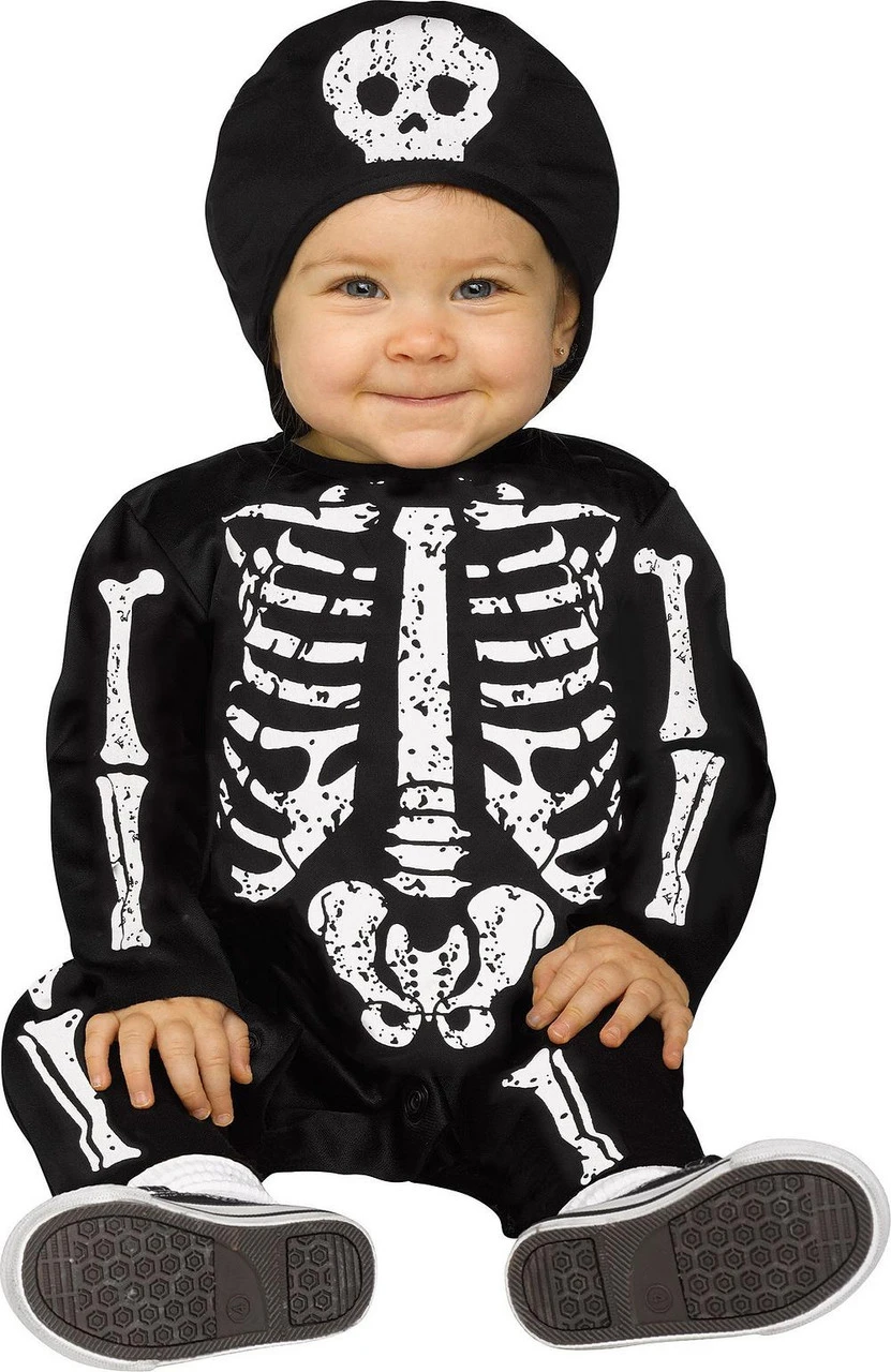 Il n’y a rien d’effrayant chez ce petit squelette ! Cet adorable Costume de Bébé Squelette Blanc est parfait pour Halloween. Votre bout d’choux sera adorable, et les squelettes sont un costume d’Halloween iconique, donc vous ne pouvez pas vous tromper ! Ce costume super cool comprend une combinaison noire avec des os blancs imprimés et un bonnet avec un crane blanc imprimé.