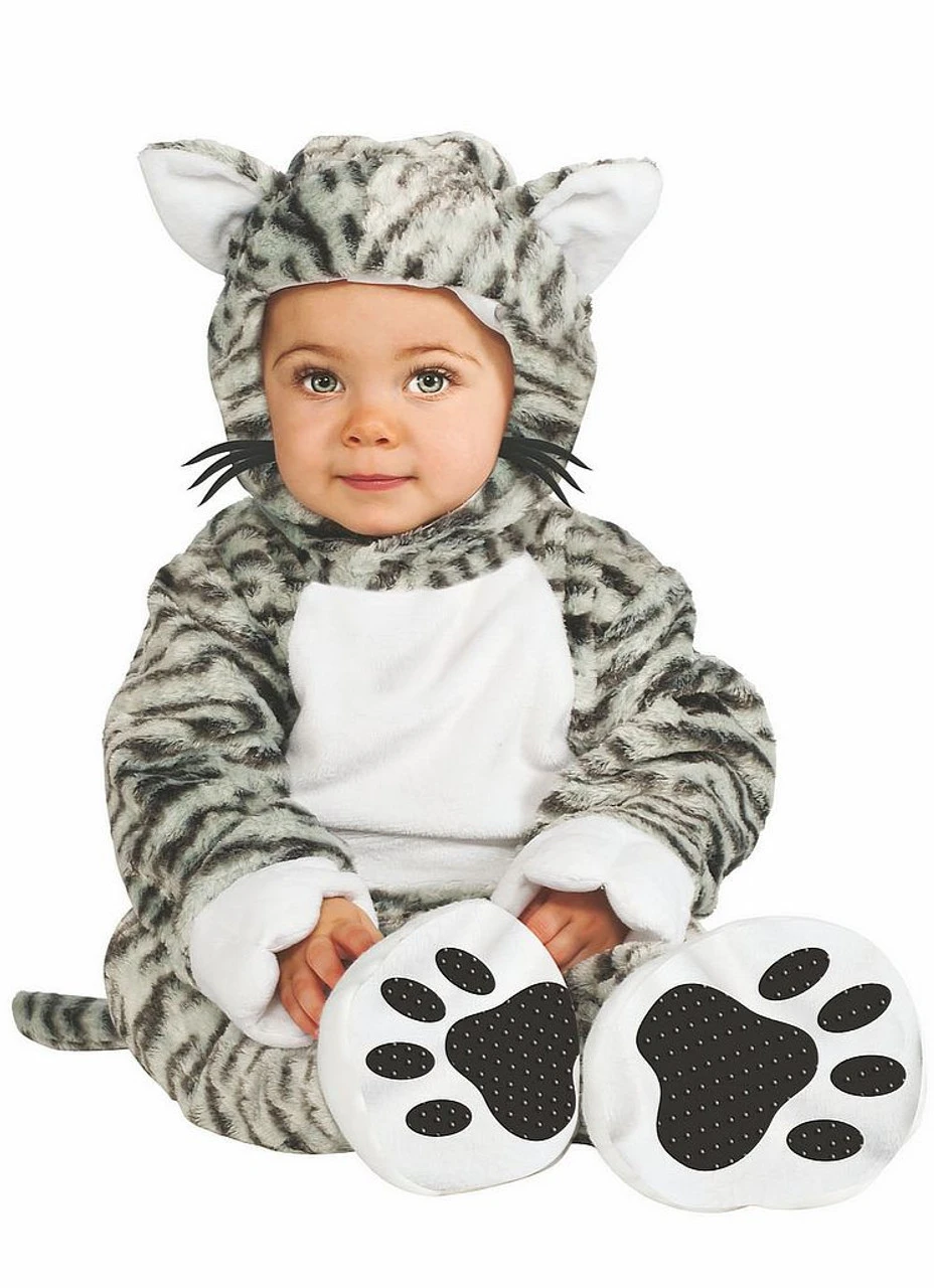 PrĂ©parez vous pour un premier Halloween sen-chat-tionel avec ce costume de Chaton Mignon pour bĂ©bĂ©! Il comprend une adorable capuche grise de chat tigrĂ© avec des petites moustaches noires et des petites oreilles, ainsi quâen combinaison de chat gris tigrĂ© avec une queue de chat tigrĂ©e, un ventre blanc et des manchettes blanches, et des petites bottines avec des pattes de chat imprimĂ©es sur la semelle.