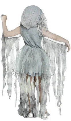 Votre enfant peut se déguiser en joli spectre avec ce costume de Fantôme Enchanteur pour Enfant! Il comprend une robe grise à capuche avec un motif toile d’araignée, plusieurs superpositions grises et transparentes, dont certaines sont en lambeaux, des manches transparentes et fantomatiques d’où pendent des bandes de gaze grises et des toiles d’araignées, ainsi qu’une chaine argentée attachée.