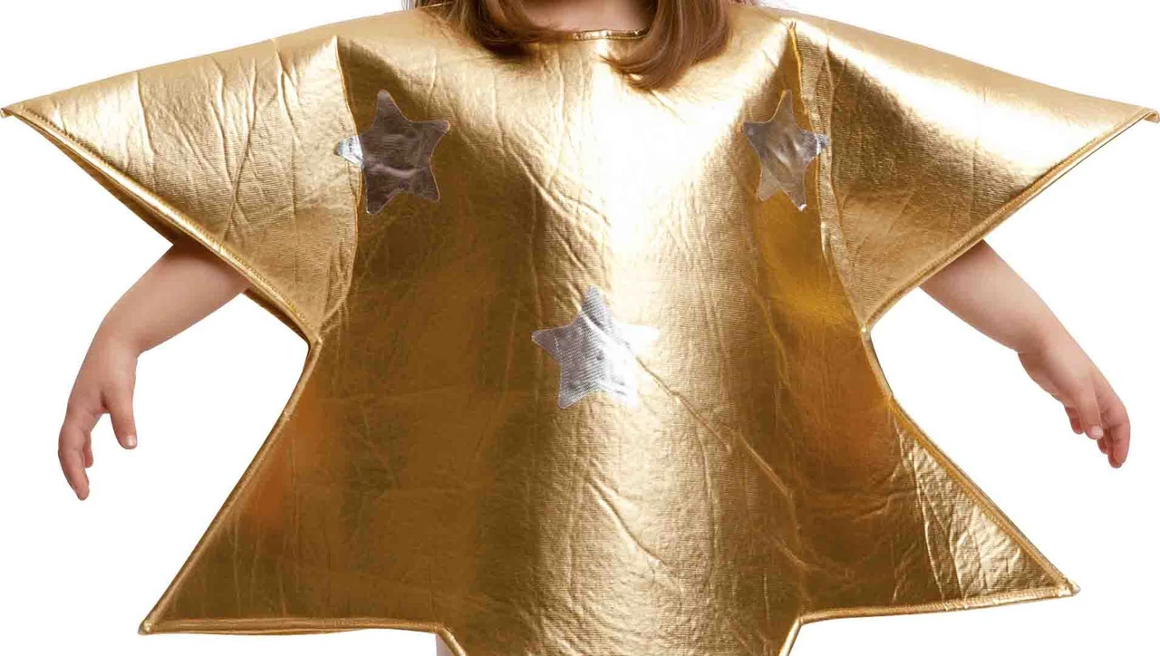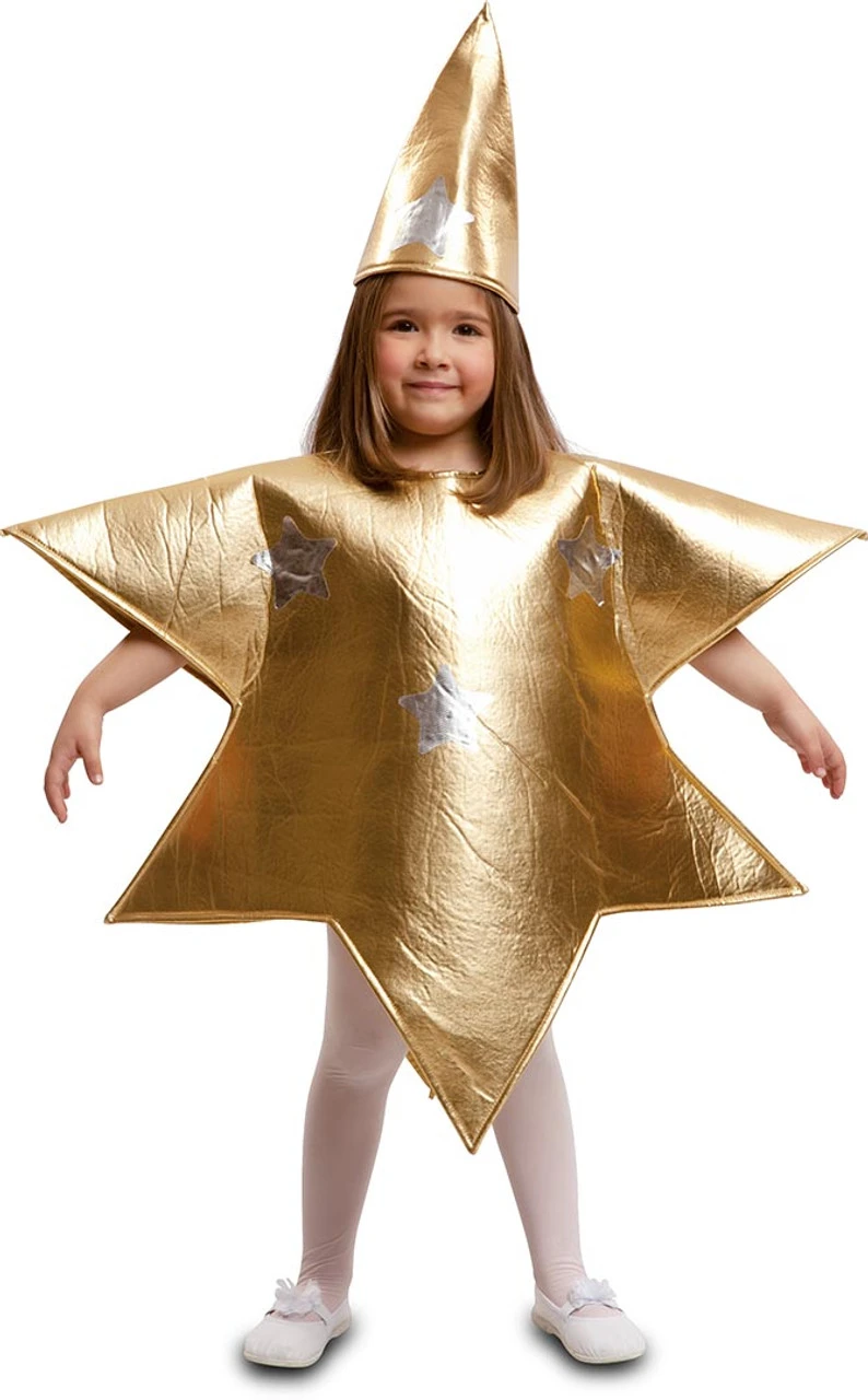 Soyez la star au sommet du sapin de Noël dans ce charmant Costume de Fille Étoile d’Or! Ce costume comprend une robe en forme d’étoile dorée avec de petites étoiles argentées imprimées partout. Il comprend également un bonnet pointu assorti, afin que votre enfant puisse être la vedette du spectacle cette saison des fêtes!