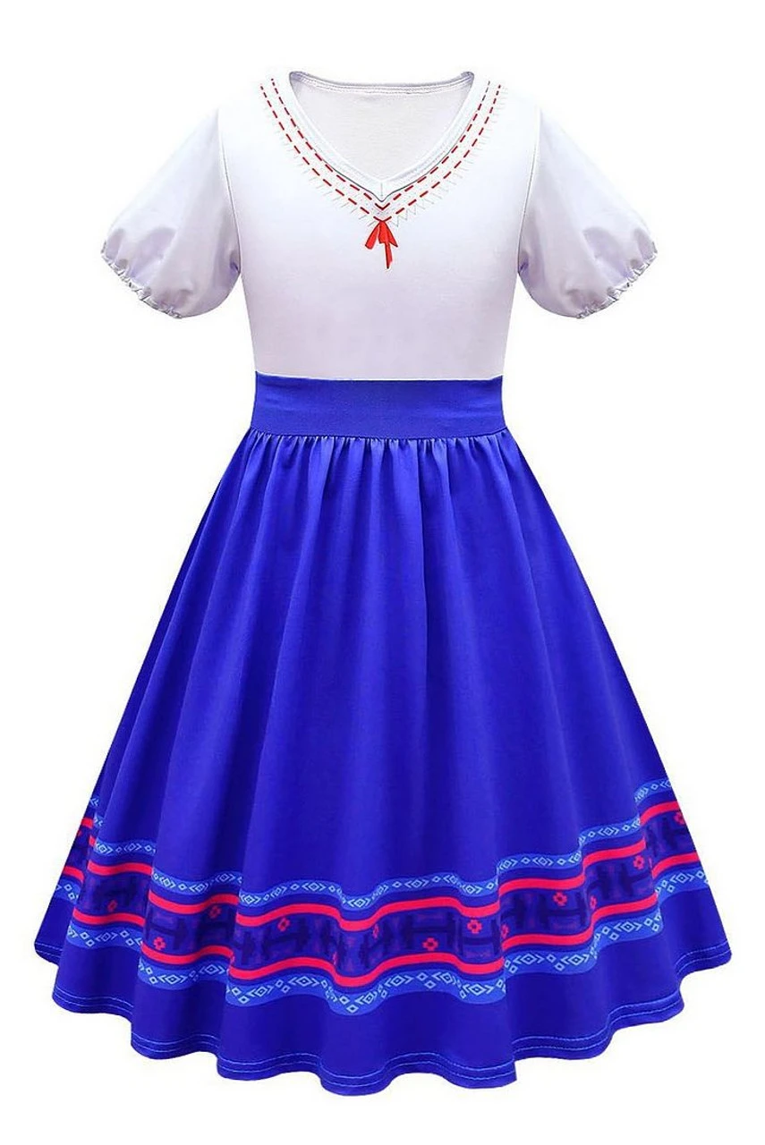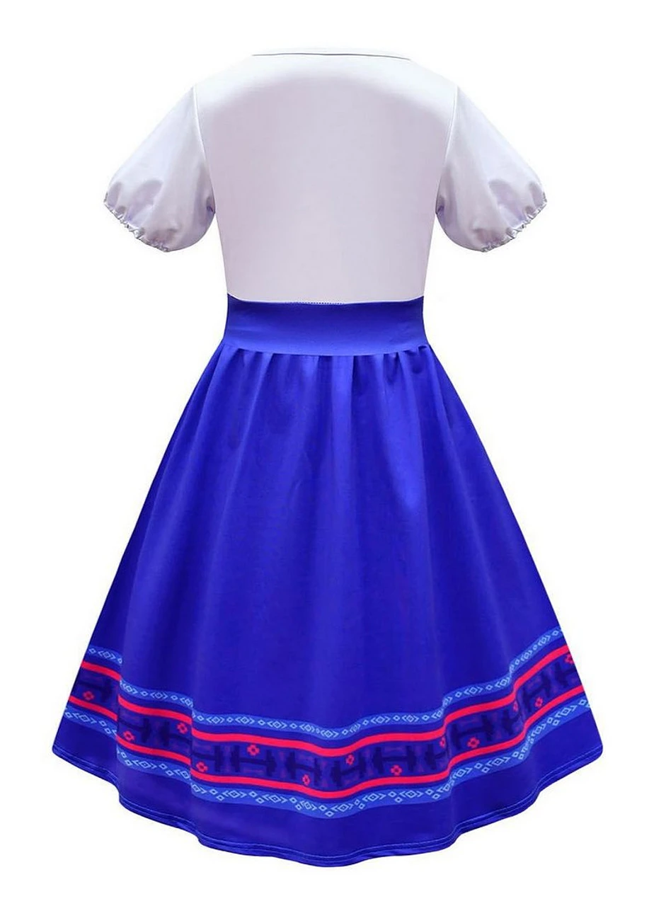 Luisa est dotĂ©e d’une super force et toujours prĂ©sente pour donner un coup de main. Devenez la fille forte, super serviable et gentille en portant le Costume de Fille Superpuissante pour Filles inspirĂ© du film. Il comprend une robe avec un haut blanc et un ruban rouge imprimĂ© sur le col et les manches courtes bouffantes. Sa longue jupe bleue a un imprimĂ© noir, rouge et bleu plus clair sur l’ourlet, dĂ©voilant les superpouvoirs de Luisa. Enfile-le et va aider Maribel dans son aventure!Â
