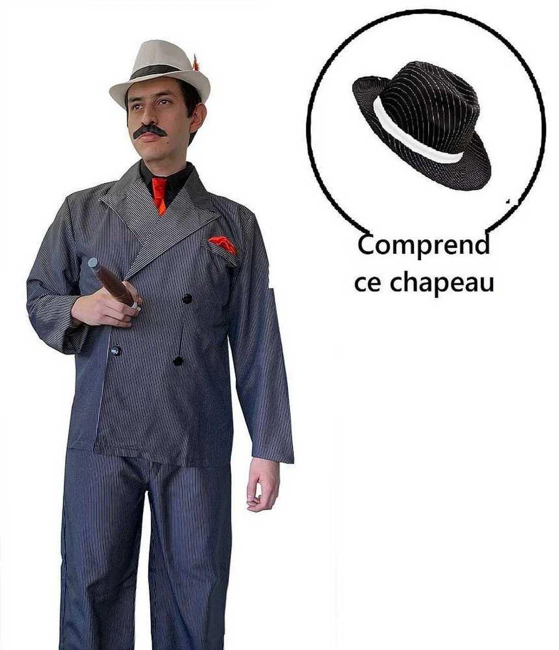 Devenez le gangster le plus riche de votre ville avec le costume de Gangster pour Homme! Ce costume classique comprend une veste grise avec un mouchoir de poche rouge, un plastron avec une cravate rouge, et des pantalons gris, et sera parfait pour une fête sur le thème des années 20 ou pour de nombreux autres événements!