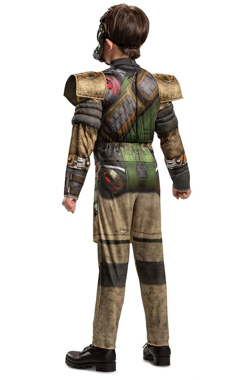 Donnez vie à votre jeu vidéo avec cet incroyable costume de Bloodhound sous licence officielle d’Apex Legends. Vous serez prêt à trouver où vos ennemis se cachent avec cette combinaison matelassée d’aspect réel. Cette tenue verte armée vous camouflera et vous gardera loin des ennuis.