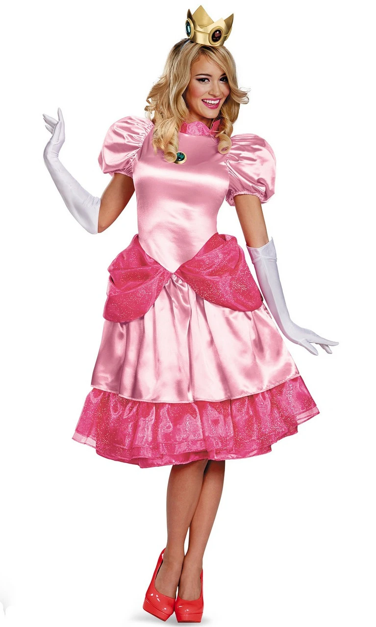 Le costume Nintendo Princess Peach Deluxe pour adulte comprend :
