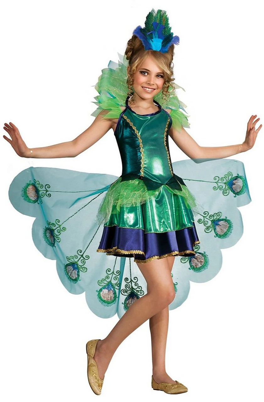 What an exquisite Peacock Halloween will see with this Peacok child mcostume. The magnificent bright, blue themed dress features a marvelous tail and one of a kind collar piece. The head piece adds additional glamour and completes the peacok look.
