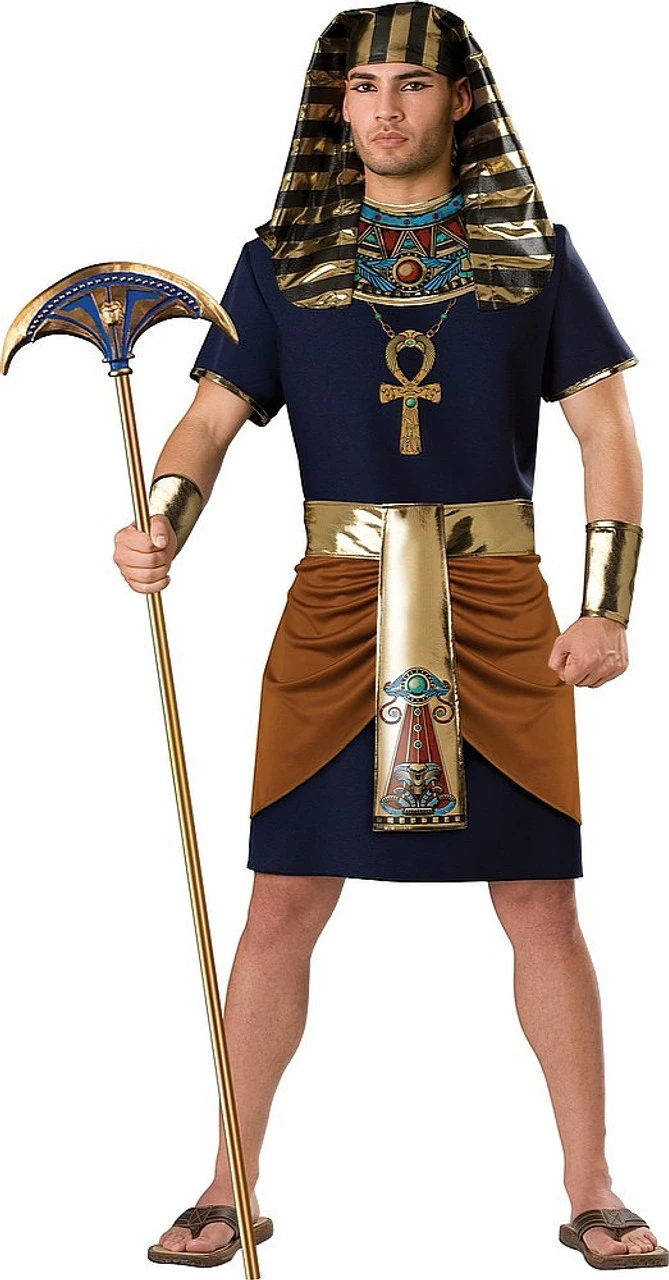 Soyez magnifiquement vĂŞtu avec ce Costume d’Homme Pharaon et rĂ©gnez en maĂ®tre cet Halloween! Ce costume royal Ă©gyptien se caractĂ©rise par une tunique bleu nuit ornĂ©e d’un col et une ceinture dĂ©taillĂ©e d’or avec un drapĂ© couleur bronze d’attachĂ©. Ce majestueux costume d’Homme Pharaon est magnifiquement accessoirisĂ© avec une paire de manchettes en or et couronnĂ© par la traditionnelle coiffe de Nemes. Un costume parfait.
