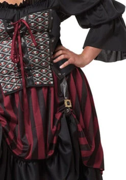 N’importe quelle petite fille sera adorable dans ce Costume de Princesse Pirate pour Toute Petite! Il comprend une robe détaillée et un adorable chapeau de pirate. La robe comprend un manteau chatoyant serrée à la taille par une ceinture avec une boucle dorée, et le chapeau comprend un foulard assorti pour compléter le superbe look de pirate. Ce costume charmant va surement tirer des « arrgh » d’approbation de votre entourage!
