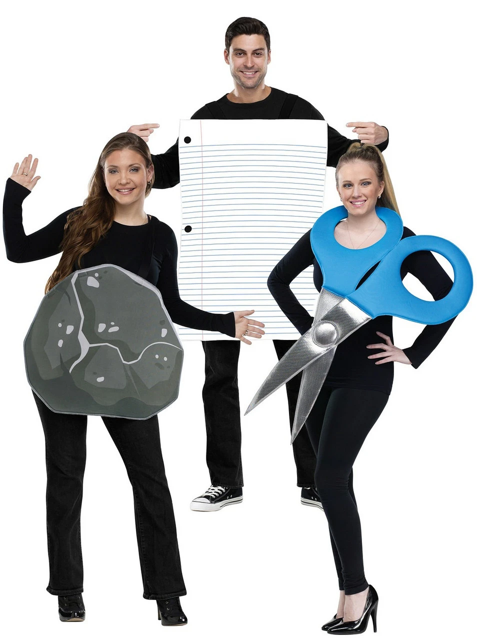 Le Costume de Roche, Feuille, Ciseau pour Adulte comprend 3 costumes dans un paquet: