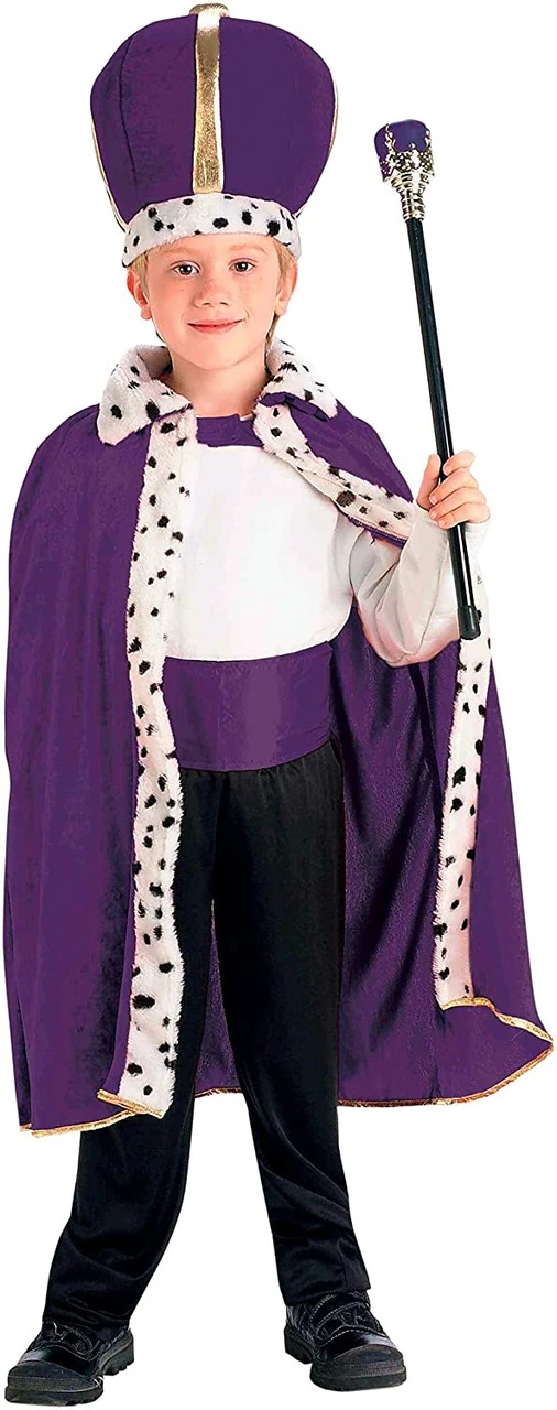 Vivez la vie comme un vrai roi dans ce magnifique Costume de Roi Robe et Couronne Violets pour Enfant! Ce costume comprend une robe mauve avec des bordures mouchetĂ©es de blanc et de noir, ainsi qu’une couronne mauve majestueuse avec la mĂŞme bordure blanche que la robe. Ajoutez un sceptre et complĂ©tez ce look royal pour gouverner le royaume avec style!Â