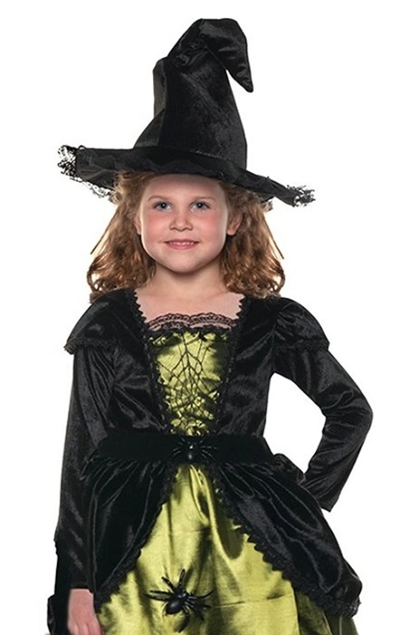 Prête à jeter des sorts et à préparer des potions pour cet Halloween?déguisez-vous en sorcière ensorcelante en portant ce costume de Sorcière Araignée pour Filles. Ce costume de sorcière comprend une robe longue en velours noir et du tissu vert brillant et un chapeau pointu assorti. Il a de mignonnes araignées en plastique attachées à la jupe. Vous recevrez certainement tous les bonbons lorsque vous ferez la tournée des maisons dans ce superbe costume.