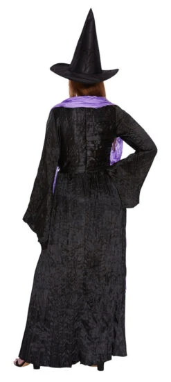 Jetez des sorts sous la pleine lune dans ce costume mystique Vilaine Sorcière pour Femme! Envoûtez tout le monde autour de vous avec ce costume inspiré d’Agatha Harkness comprenant une robe noire longue au sol avec un décolleté en V et de longues manches fluides. La robe comprend également une longue jupe drapée avec une légère ouverture sur le devant pour une coupe élégante. Ce costume est également doté d’un chapeau de sorcière noir classique et un magnifique collier. Enfin, enveloppez-vous dans l’écharpe fluide violette incluse pour un costume vraiment élégant et envoûtant cette saison d’Halloween.