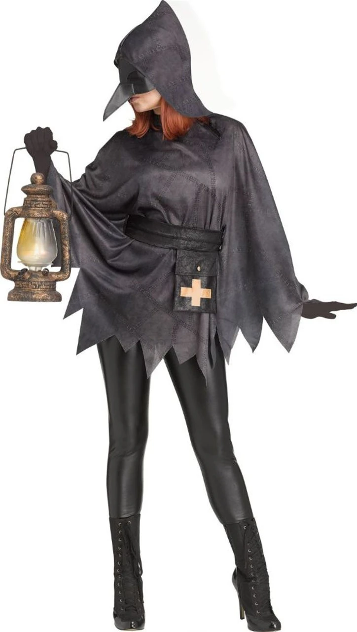 ProtĂ©gez-vous de la Covid-19 et d’autres maladies mortelles dans ce costume de Docteur de la Peste! Naviguez dans le monde post-pandĂ©mique avec cette tunique noire Ă manches longues avec un dĂ©tail dentelĂ© et une capuche. Transportez vos fournitures mĂ©dicales en toute sĂ©curitĂ© avec notre ceinture noire avec pochette et croix brune. Enfilez notre masque au nez pointu en plastique noir pour une protection et un anonymat maximale pendant que vous naviguez dans la soirĂ©e effrayante, avec toutes les maladies qui peuvent se cacher dans l’ombre!Â