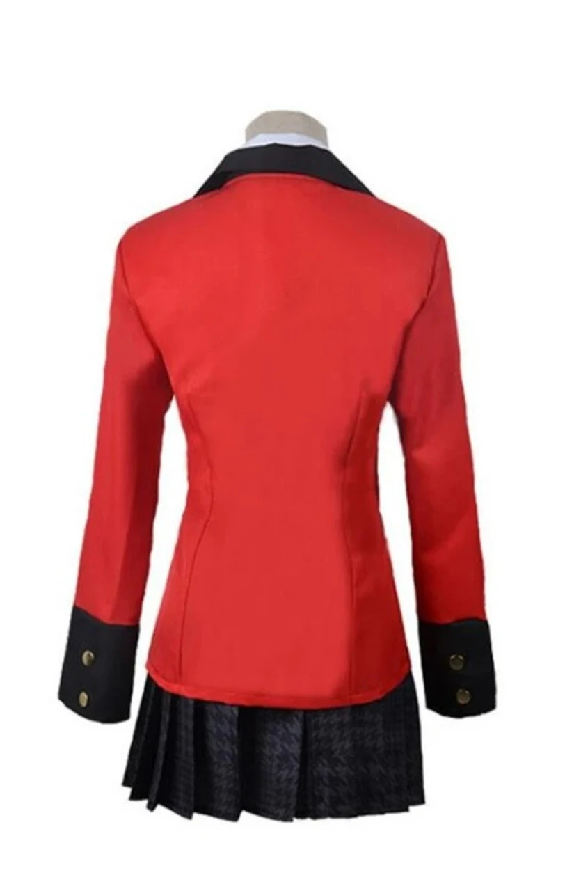 Attire l’attention de tes amis et sois charismatique comme Jabami Yumeko de Kakegurui! C’est un excellent uniforme d’école privée à porter pour votre prochain cosplay! Le Costume Ecolière Animé pour Femmes comprend une veste rouge et noire avec un dessous blanc et une chemise avec une cravate croisée noire. La jupe à carreaux foncés complète le look!