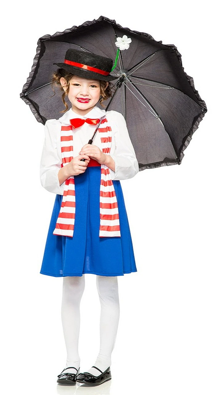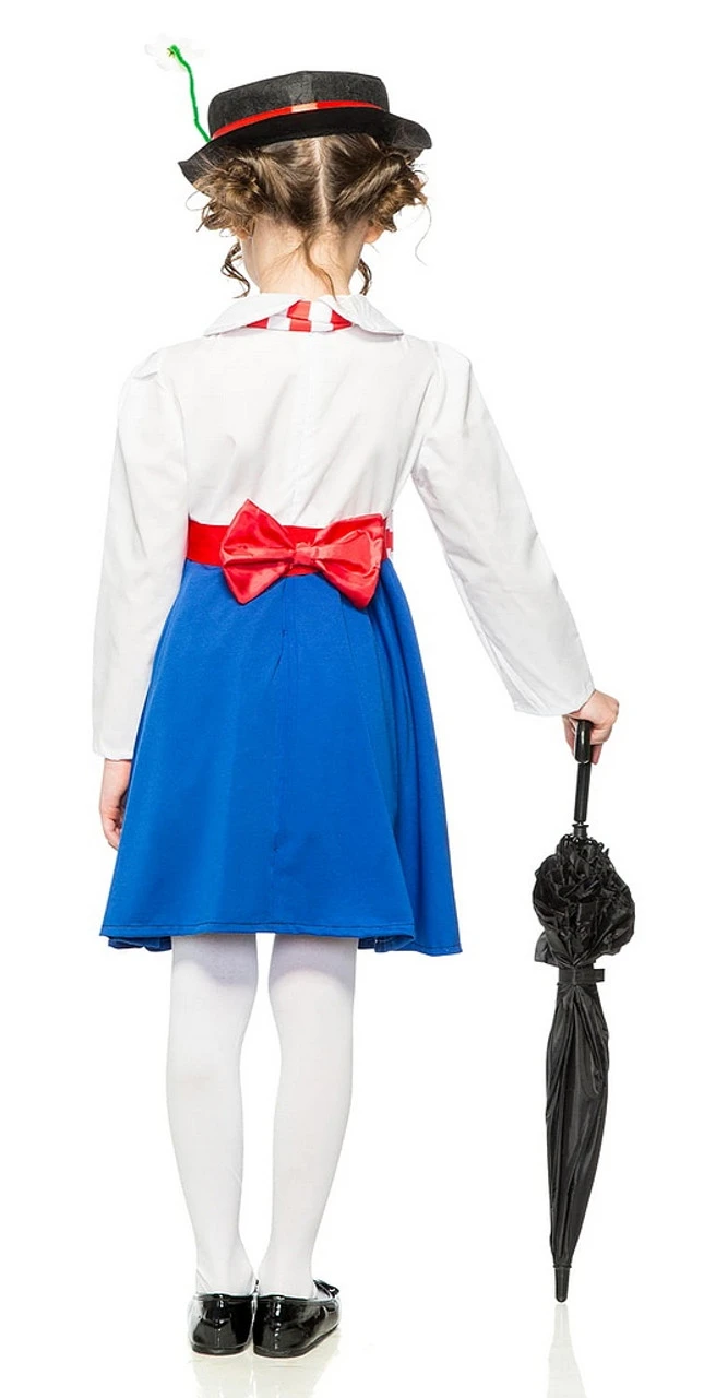 Ajoute un peu de magie Ă ta vie avec ce Costume Mary Poppins d’enfant! Ce joli costume te permettra de devenir ta nounou anglaise Disney prĂ©fĂ©rĂ©e. Il met en vedette une robe avec un haut blanc style blouse, une jupe bleue et un nĆud papillon rouge, ainsi qu’un foulard rayĂ© rouge et blanc, et un chapeau noir et rouge avec une marguerite. Ajoutez un parapluie (non inclus), quelques collants (non inclus), et bien sĂ»r un sac Ă main sans fond (non inclus) pour complĂ©ter le look!