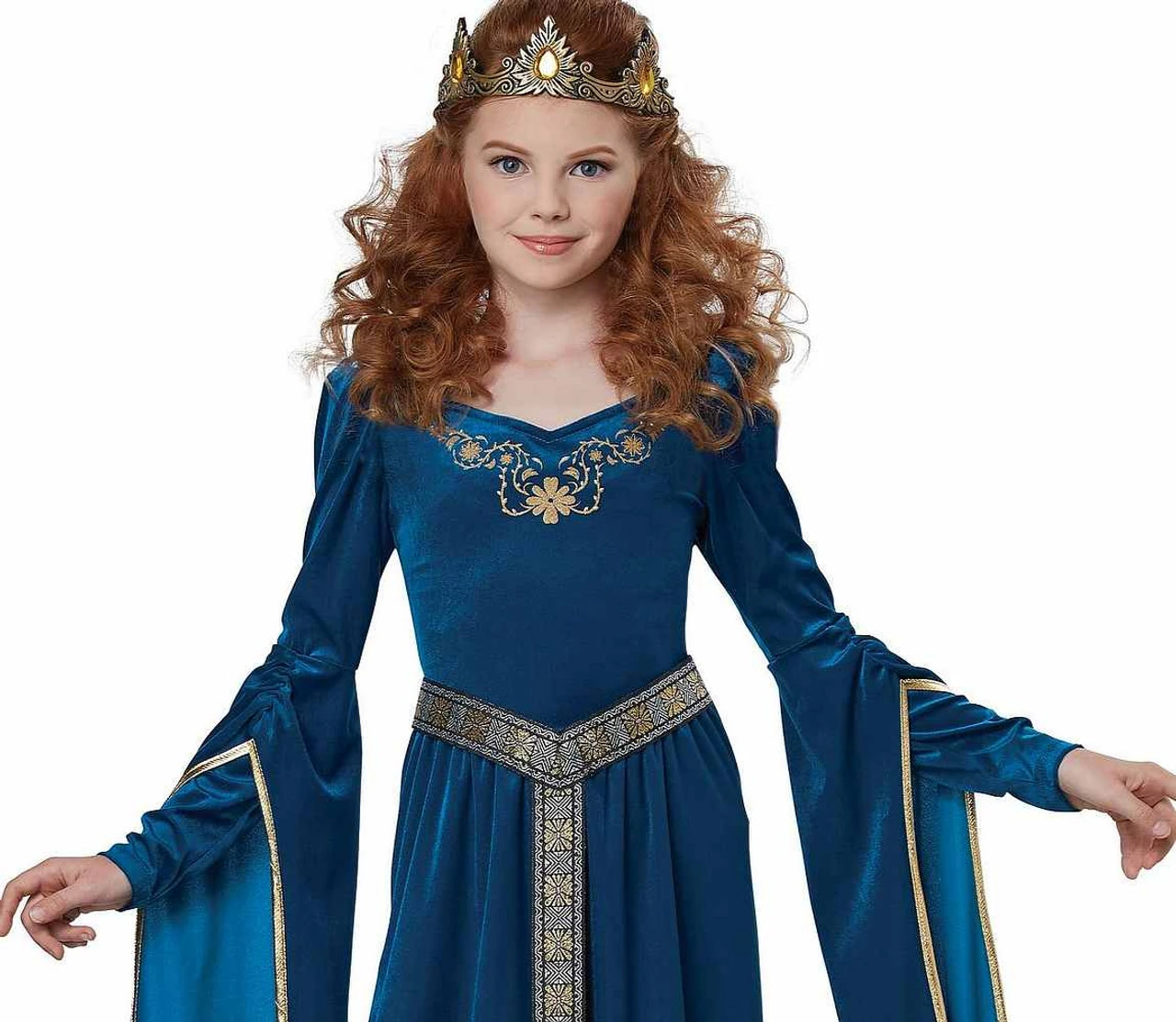 Votre petite fille rêve-t-elle toujours d’être une princesse? Elle sera prête à tout affronter en portant cette robe de princesse médiévale! Le Costume Merida Princesse Médiévale pour Filles comprend une robe bleue avec un long tissu attaché aux manches et des finitions dorés. Ce costume est parfait pour de nombreuses occasions telles que les mariages médiévaux, les fêtes d’anniversaire, les pièces de théâtre à l’école et bien sûr Halloween!
