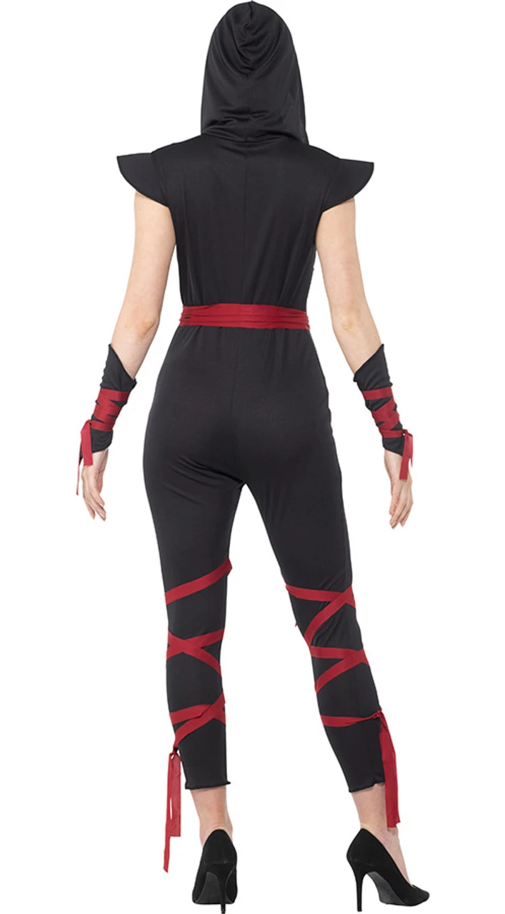 Tu peux facilement faire des ravages en portant ce costume de ninja sexy! Ce costume sexy comprend un body ninja noir avec une capuche, un dĂ©colletĂ© en V et des bandeaux rouges sur les jambes, des brassards noirs avec des bandeaux rouges assortis, une ceinture rouge et un demi-masque ninja rouge. Vos ennemis devront faire attention car vous serez la guerriĂšre la plus furtive de la soirĂ©e!Â