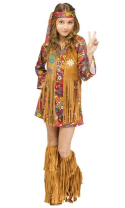 Laissez votre fille répandre un peu d’amour cet Halloween avec ce costume Peace & Love hippie pour fille ! Cette jolie tenue se compose d’une mini robe imprimée de fleurs avec un gilet à franges marron attaché et des manches longues. Un signe de paix lumineux et un accent de fleur sont également imprimés sur la robe, donnant à ce costume une sensation plus des années 60. De plus, ce Peace & Love Hippie Girl Costume a un bandana imprimé fleuri assorti et des couvre-bottes en daim à franges qui complètent le look. Apportez ceci à votre petite fille et elle sera sûre de passer une soirée groovy cet Halloween !