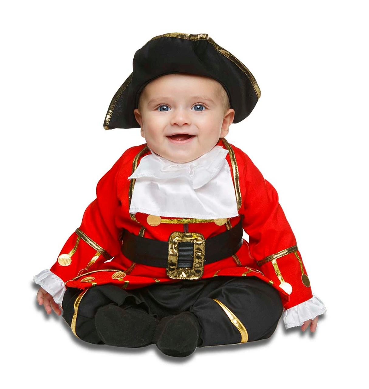 Transformez votre bébé en capitaine de navire dans cet adorable Costume Petit Corsaire pour Bébé Garçon! Ce costume confortable comprend une chemise blanche avec de longues manches rouges et des détails dorés pour un look de capitaine royal. Il comprend également un pantalon noir avec des finitions dorés assortis aux chevilles et une ceinture noire avec boucle dorée. Associez ce look marin avec ce charmant chapeau de pirate noir à bordure dorée et naviguez sur les sept mers cette saison d’Halloween!