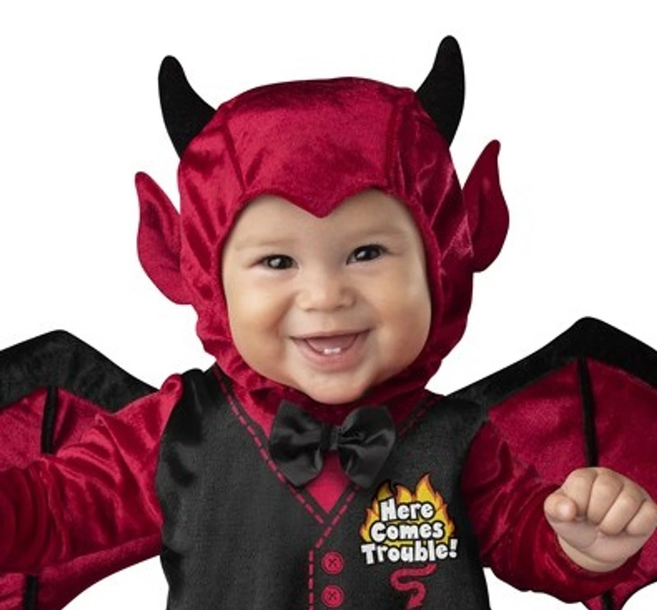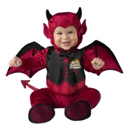 Tout le monde sait que les bébés ont leur petit côté maléfique. Ils sont peut-être mignons, mais pas si innocents que ça! Affichez votre adorable petit diable avec cette combinaison chaude et douce. Elle comporte une combinaison en velours rouge avec des boutons-pression pour faciliter le changement de couche et des pieds antidérapants. Elle comporte également une veste imprimée et un joli papillon noir, des ailes détachables et une queue détachable, ainsi qu’une capuche avec des cornes et des oreilles. Ne vous laissez pas tromper par son apparence mignonne, ce bébé est un vrai petit démon à l’intérieur!