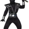 Un guerrier ne sera jamais aussi habile et fort que si il n’avait jamais fait d’arts martiaux. Les armes du costumes sont des copier-coller de ce que les vrais ninja apportent avec eux dans toutes leurs aventures. Le haut noir avec ses détails en or se marie bien avec le pantalon noir et transformera votre petit en un véritable ninja. Le masque et la ceinture de taille rouge sont les éléments supplémentaires pour couronner le look de ninja furtif. Le garçon Costume Ninja comprend: * Le haut avec cagoule * Les pantalon assorti * La ceinture de taille * Le masque noir assorti * L’épée n’est pas incluse
