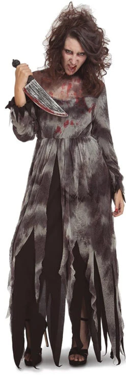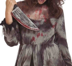 Incarnez le cauchemar de tout le monde avec ce Costume Psycho Folle pour Femme absolument terrifiant! Faites peur Ă tous vos amis Ă la fĂŞte dans ce costume effrayant, qui comprend une longue robe grise et noire Ă©claboussĂ©e de sang. Les bords de la robe sont dĂ©chiquetĂ©s et sont superposĂ©s Ă un tissu noir. Cette robe est Ă©galement Ă manches longues et possède un dĂ©colletĂ© en forme de cĹ“ur avec un tissu transparent noire sur la poitrine, qui monte jusqu’au cou. Ajoutez un couteau, une perruque Ă©bouriffĂ©e et une expression faciale assoiffĂ©e de sang et effrayez tout le monde pendant la saison d’Halloween!