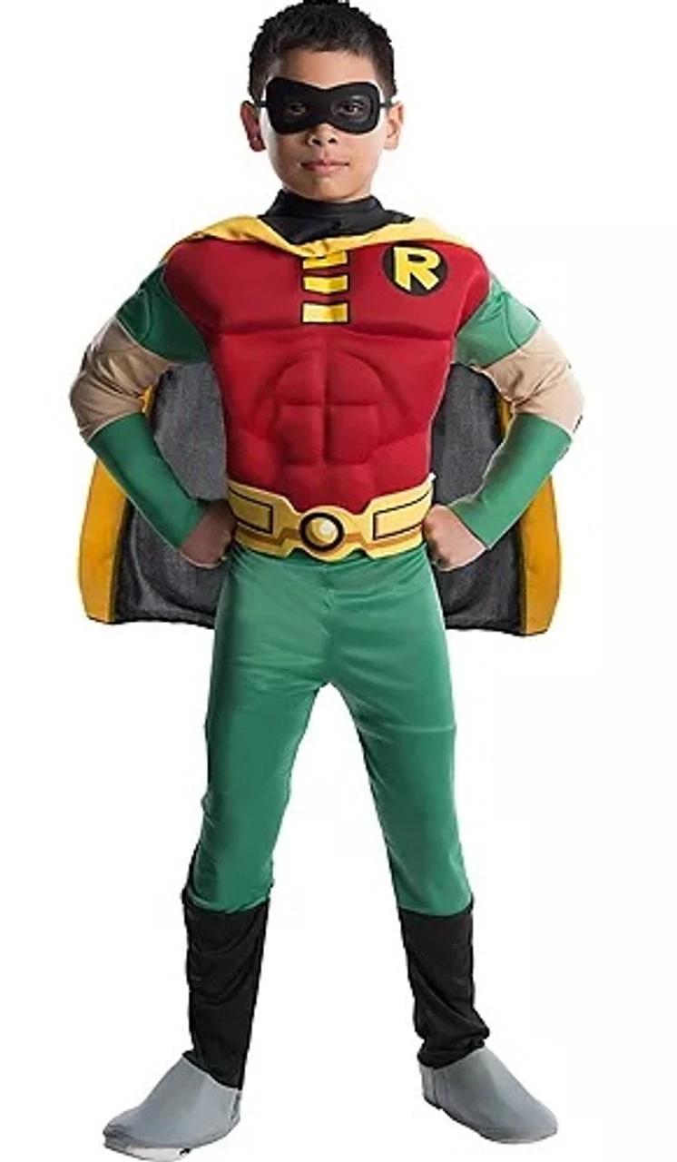 Du team des supers hĂ©ros des DC Comics, les Jeunes Titans, ce costume de Robin Jeune Deluxe transformera votre enfant en son super hĂ©ro favori. Le costume de Robin Jeune Deluxe a une combinaison avec un super torse musclĂ© avec les couleurs de Robin â jaune et verte, avec du rouge et noir ici et lĂ . Une superbe cape noire et jaune, un masque pour les yeux, une ceinture stylĂ©e et des hauts de chaussures voyant sont inclus. Aidez votre garçon le Ă ĂȘtre le super hĂ©ro avec le costume de Robin Jeune Deluxe.