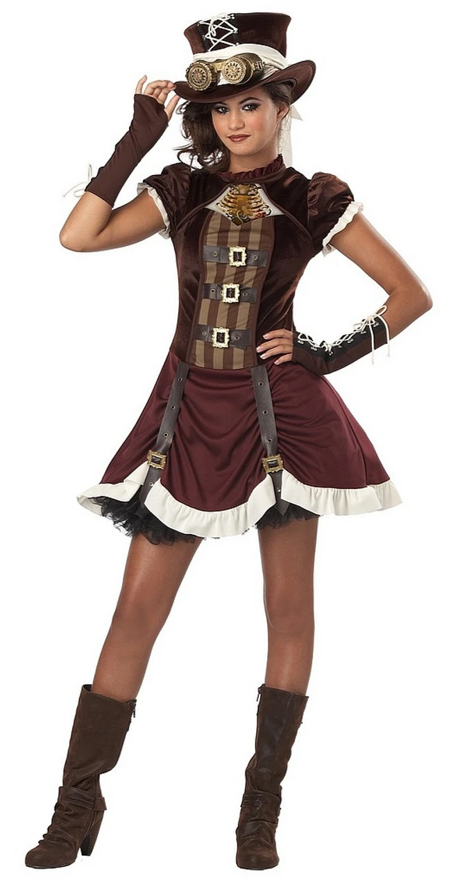 Votre petit bout de chou sera une hĂ©roĂŻne courageuse et prĂŞte Ă combattre le mal grâce Ă ce costume SteamPunk pour fille. Comprenant une robe bordeaux Ă manches bouffantes, des bouclettes de fermeture et des mitaines marrons ainsi qu’un chapeau très Ă©lĂ©gant et son châle, votre fille doit ĂŞtre prĂŞte pour ĂŞtre Ă©lue pour avoir plus beau costume de la soirĂ©e. Le jupon noir est en revanche vendu separemment