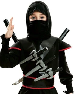 Apprenez les secrets des ninjas et maîtrisez les arts martiaux dans ce Costume Tueur Ninja pour Garçon! Ce costume se compose d’une chemise noire avec des épaulettes et des bords rouges, ainsi que d’un pantalon noir assorti. Il comprend également une cagoule noire avec un masque pour un maximum d’anonymat pendant que votre enfant explore le monde des arts martiaux. Pour porter leurs armes, ce costume est livré avec un étui noir qui se porte sur leur poitrine et comprend également une ceinture noire avec une bordure rouge. Tout ce dont votre enfant a besoin sont des armes jouets pour compléter ce look, et ils sera prêt pour une nuit de secret et d’arts martiaux!