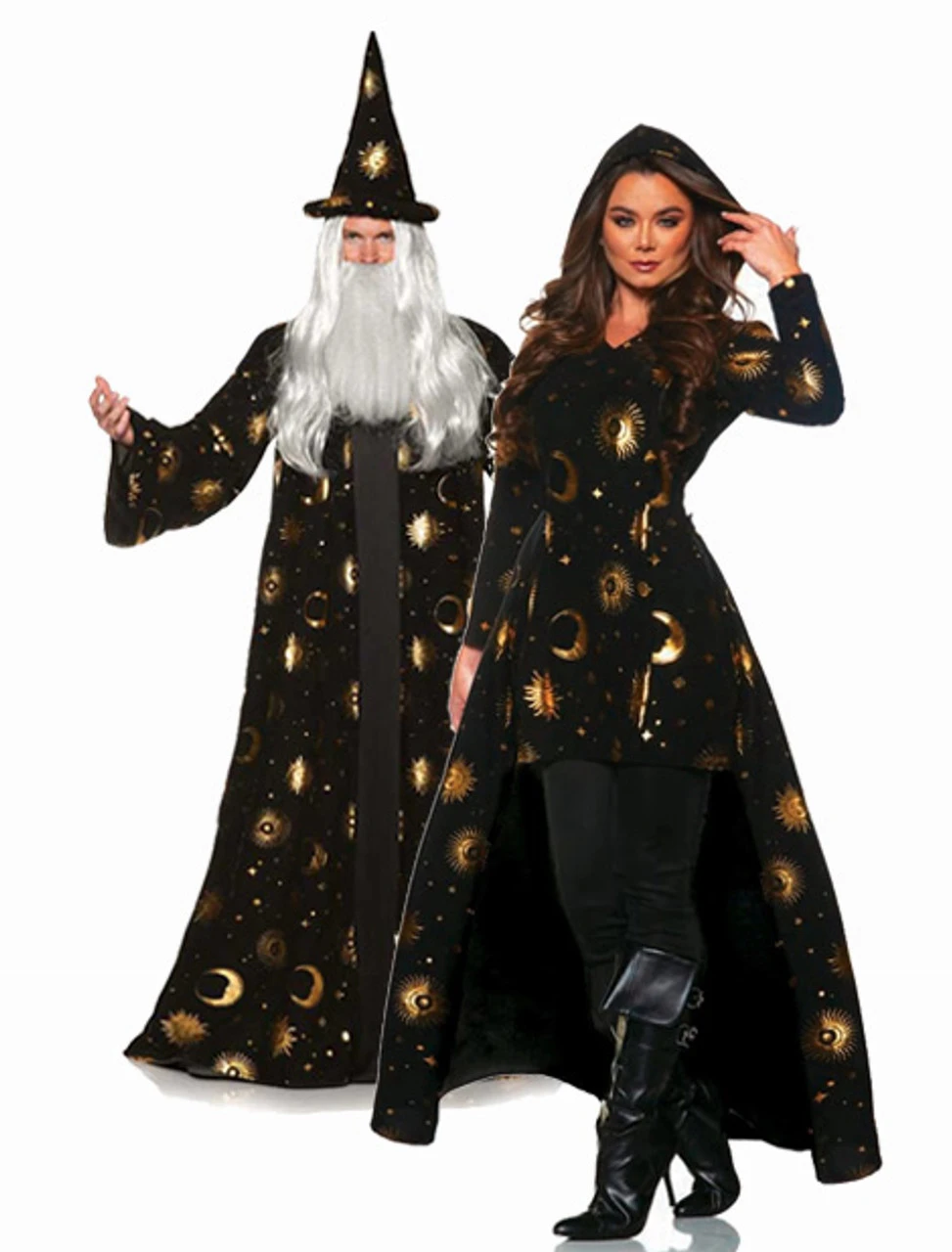Jetez des sorts et charmez ceux qui vous entourent cette saison d’Halloween dans le Costume de Sorcier Céleste pour Homme! Ce costume magique comprend une longue tunique noire royale avec un imprimé soleil et lune dorés et des manches longues. Il est également livré avec un chapeau pointu assorti, vous pouvez donc être la personne la plus enchanteresse de la fête et ensorceler toute la nuit!