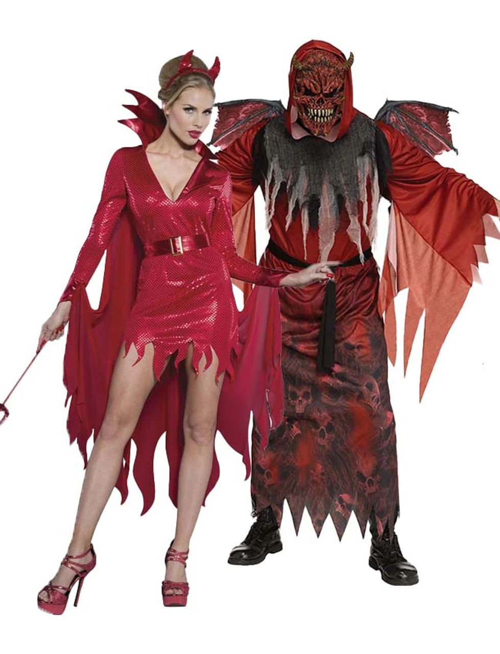 Le diable incarné n’a jamais été aussi séduisant dans ce costume de femme diable sexy. N’importe quelle femme aurait l’air méchamment sexy dans cette robe rouge courte avec un corsage à paillettes. La robe a des ourlets en lambeaux semblables à des flammes, une ceinture avec une boucle dorée, un col haut et une cape attachée. Elle comprend également la coiffe avec les cornes du diable et la fourche. Ce costume unique enflammera n’importe quelle fête.