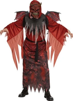 Offrez-vous un costume à l’allure démoniaque pour cet Halloween! Le Costume de Démon Ailé pour Adultes comprend une robe à capuche noire et rouge avec une sérigraphie très détaillée de crânes hurlant silencieusement. Le costume est complété par des lambeaux déchiquetés et des ailes détachables assorties.
