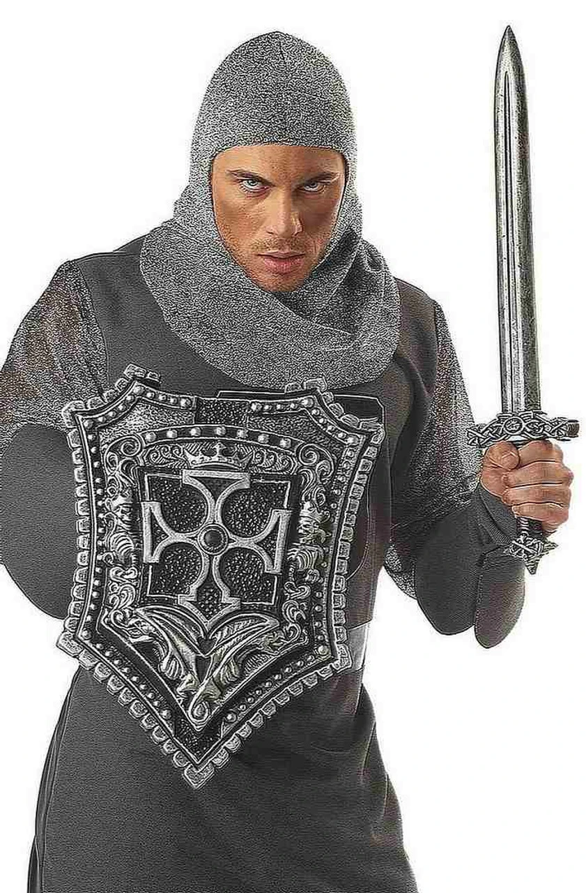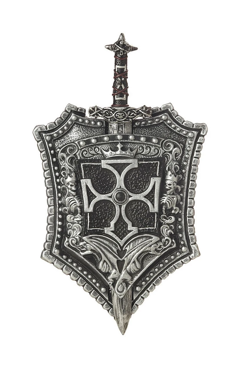 A tres beau accessoir pour completer vos costumes medieval. Le bouclier sans l’epee mesure 34 cm (13.5 pouces) en largeur et 43cm (17 pouces) en longueur et l’epee 60 cm de long (24 pouces). Ce bouclier et cette Ă©pĂ©e sont fabriquĂ©s Ă partir d’un plastique robuste.