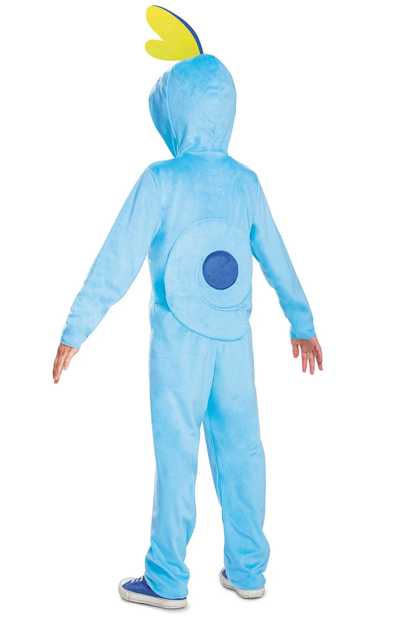 Qui ne pourrait pas s’identifier à ce Pokeman Sobble qui est une jolie réplique du personnage? Étant un Pokémon de type eau, la combinaison Pokeman Sobble comprend une combinaison de couleur bleue dans un matériau doux, un ventre bleu plus clair et une capuche attachée avec une nageoire de tête en jaune et les traits d’un visage sur la capuche. Le Déguisement Pokeman Sobble pour enfant comprend :