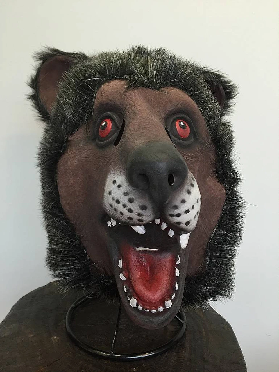 Latex Bear Mask complete with teeth and red eyes. For adults.