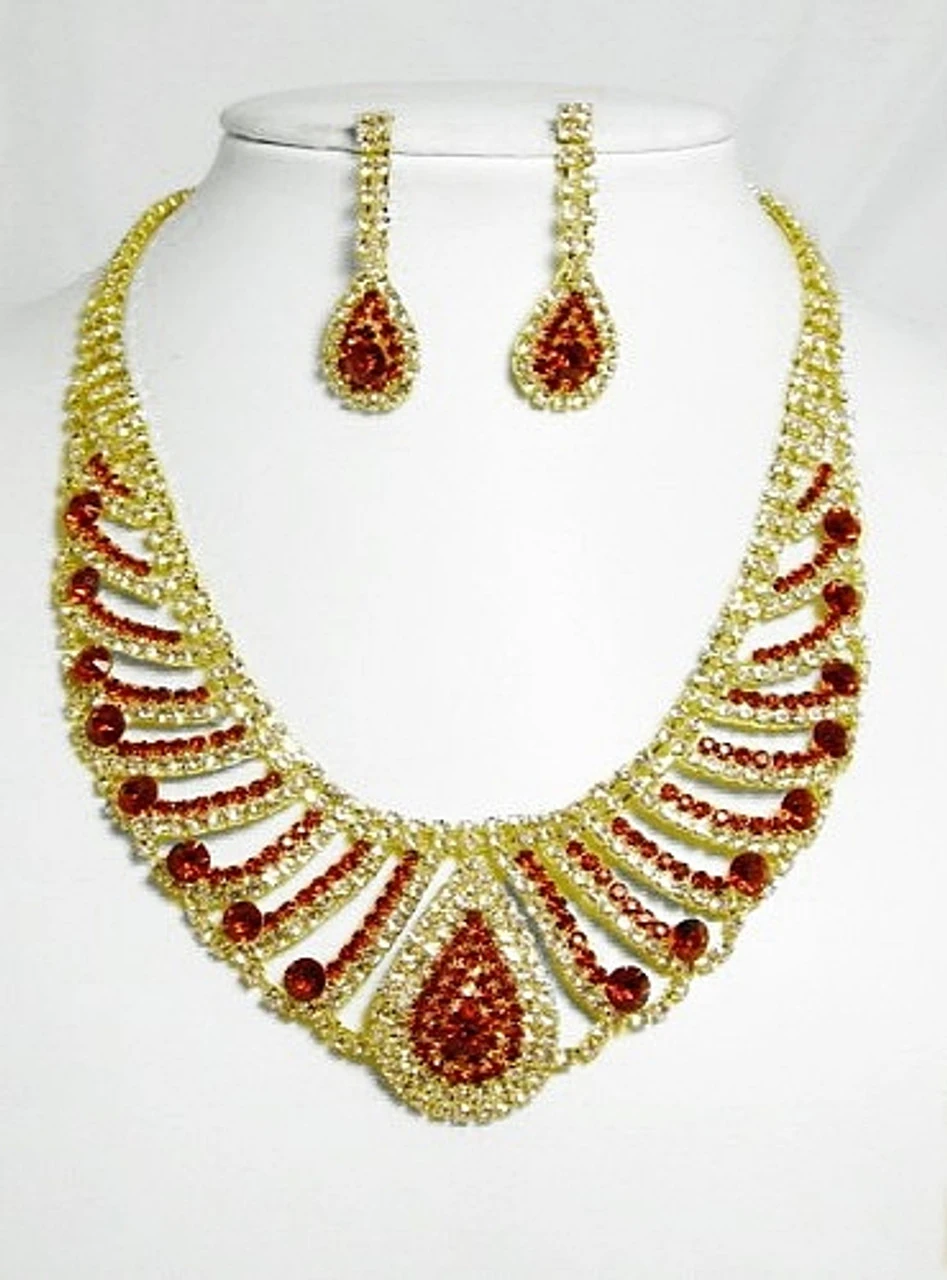 Gold & Red Necklace Set includes: