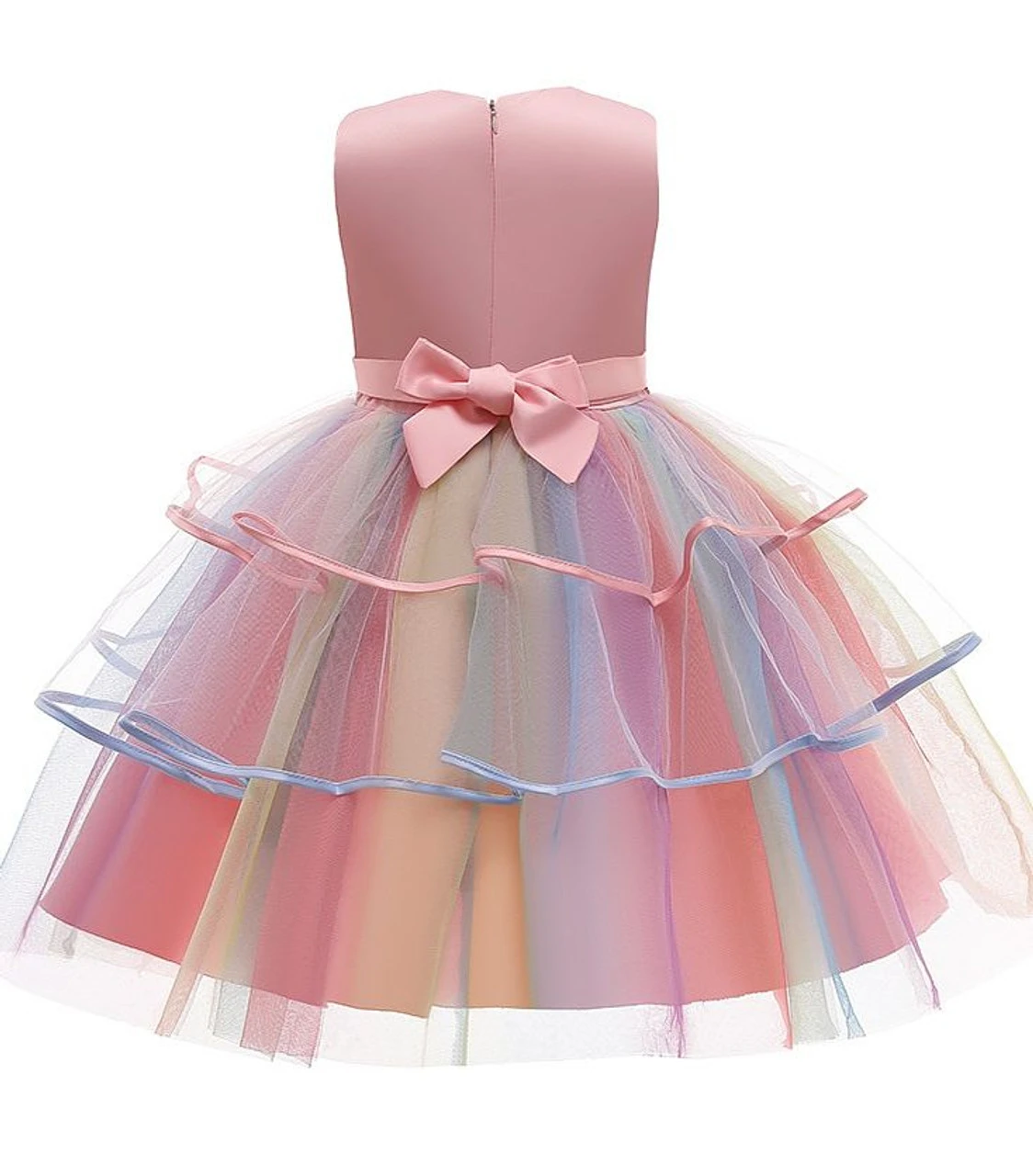 Laissez votre petite fille se sentir magique dans cette Robe Licorne Rose pour Filles! La robe est dotĂ©e d’un col rond, sans manches, de dĂ©calcomanies sur la poitrine, de volants roses et d’une jupe en forme de jupon avec plusieurs couches de tulle. La robe est ample et belle comme devrait l’ĂŞtre une robe de princesse!Â